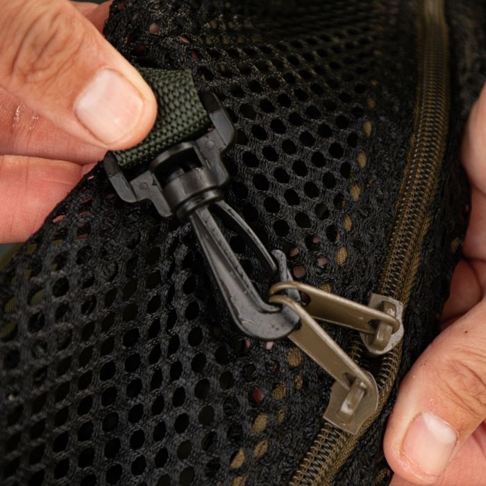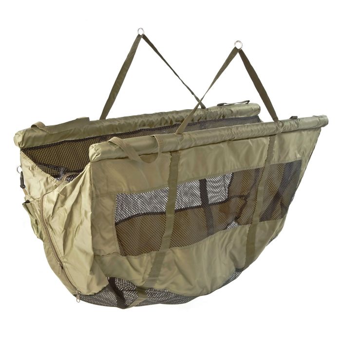 Die langen Schwimmkörper tragen eine leichtgewichtige, fischfreundliche und weiche Einheit aus Nylon und ein Netz, das abdunkelt und außerdem maximalen Wasserdurchlauf ermöglicht; die Grundlage dafür, dass der Fisch ruhig bleibt und geschont wird. Ein starkes Seil ist integriert, und die EVA Haltegriffe erlauben ein schnelles und einfaches Herausheben aus dem Wasser.