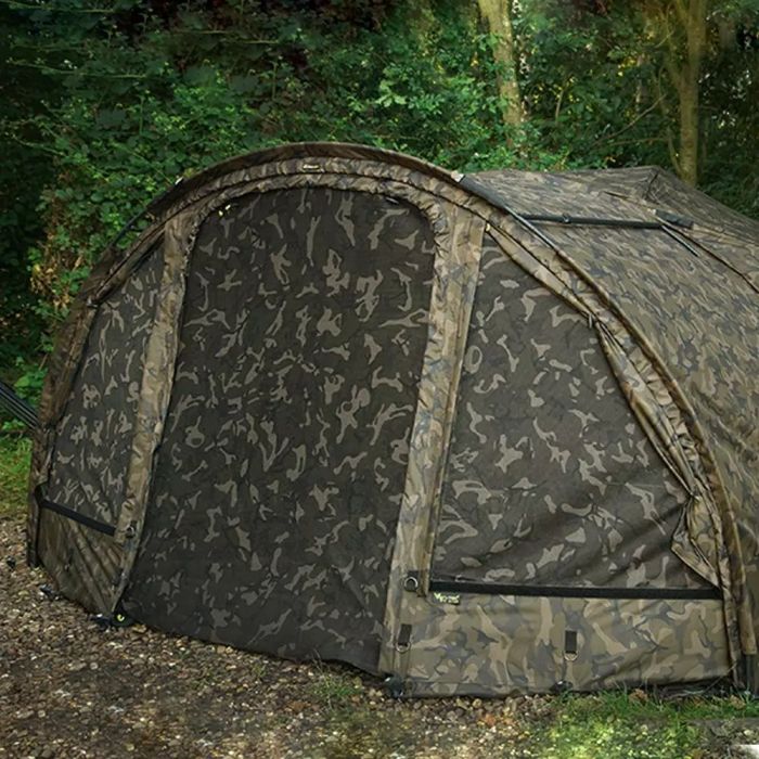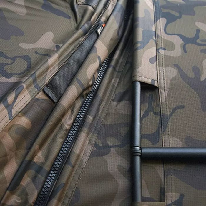 Die Ultra Brolly Camo Front Vergrößerung wurde nach dem gleichen Muster gestaltet wie die Fox R-Series Brolly Vergrößerung, um den Fox Ultra Brolly um einen ganzen Meter nach vorne zu erweitern und somit dieses in einen praktischen Zweimann-Unterschlupf zu verwandeln.