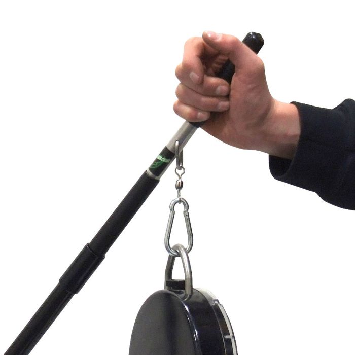 Das ist eine Universell einsetzbare Wiegestange. Mit ihrem englischen 3/8'' BSF Gewinde kann sie einfach auf einen Kescherstab, Bankstick oder eine stabilen Sturmstange geschraubt werden um ein genaues Wiegeergebnis zu erhalten. Beidhändig kann sie auch benutzt werden indem man einfach die Waage einhängt.