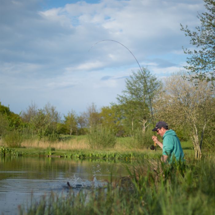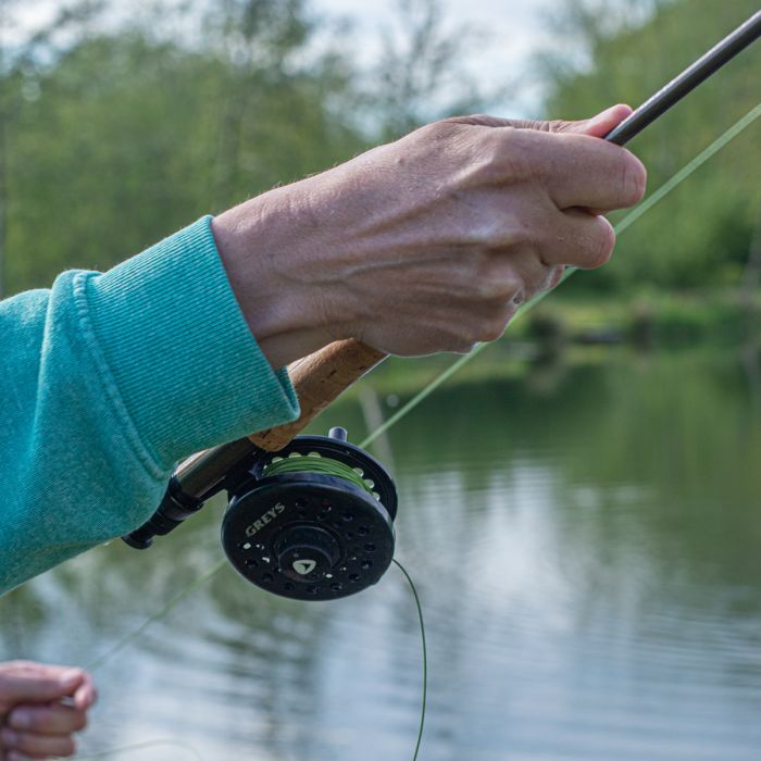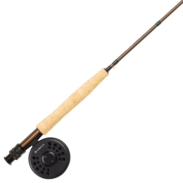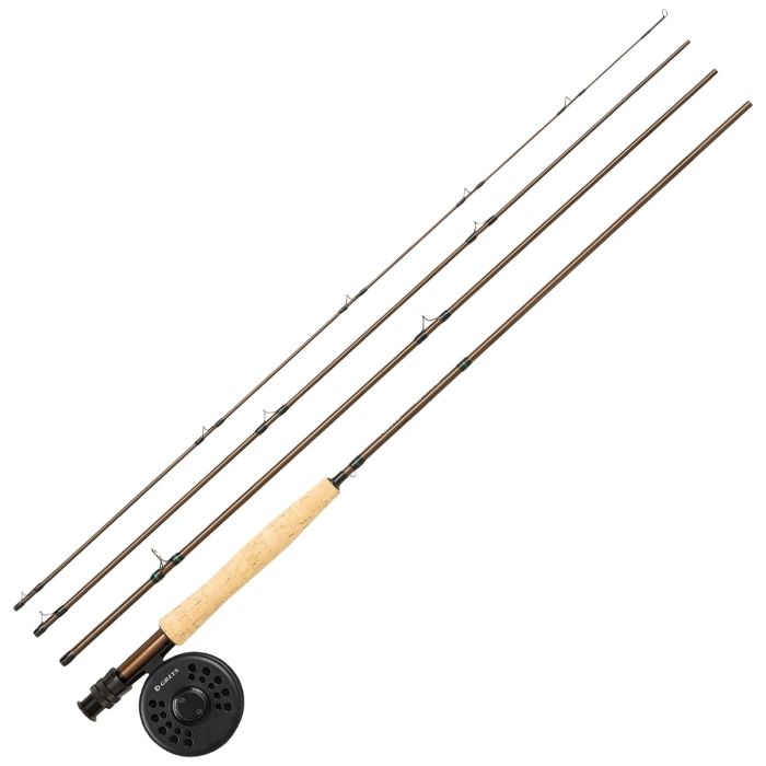 Eine hochwertige Rute mit mittelschneller Aktion und Aluminium-Fliegenrolle, ausgestattet mit WF-Schlagschnur und Vorfach, geliefert in einem praktischen Futteral.