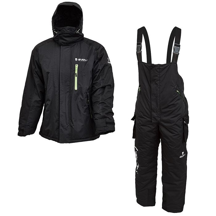 Der Thermoanzug von Gunki besteht aus einer Latzhose (mit verstellbaren breiten Trägern) und einer ¾ langen Jacke. Entwickelt für das Angeln bei sehr kaltenm Wetter. Er ist sehr angenehm zu tragen und seine Bewegungsfreiheit ist nicht eingeschränkt. Dieser Thermoanzug wirde aus 320D Taslon Stoff gefertigt, ist zu 3000mm wasserdicht und atmungsaktiv bis 3000g/ m²/24h. Im inneren hat er Fleece-Futter, um warmzuhalten. An der Jacke gibt es eine verstellbare Kapuze zum Überziehen und ein großer Schutz für den Hals. Breite Klettverschlüsse an den Hand- und Fußgelenken, damit eiskalte Luft nicht so schnell eindringen kann. Alle Nähte wurden für eine bessere Wasserdichtigkeit abgeklebt. Ein großartiges Produkt für die kältesten Angeltage.