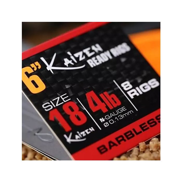 Die Guru Kaizen Riggs haben einen superscharfen Kaizen Plättchenhaken mit PTFE-Beschichtung. Er hat eien einzigartige Offset-Form mit extra weitem Bogen. Und diese Vorfächer führen zu mehr erfolgreichen Bissen und weniger verlorenen Fischen.