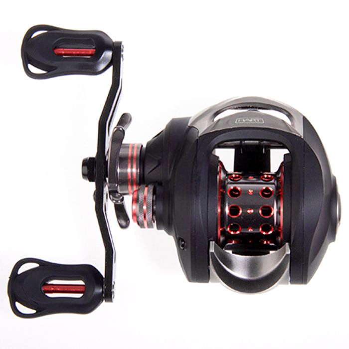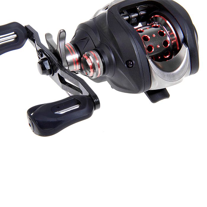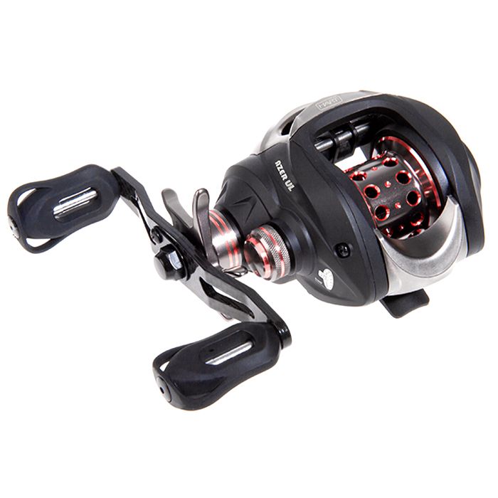 Diese optisch schöne Azer Baitcaster Rolle, mit ihrem grau, schwarz und rot, läuft gut an und funktioniert ohne Ruckeln, auch bei dünnen Schnüren.