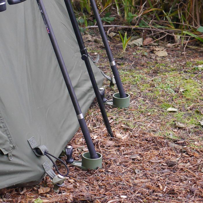 Der Butt Cup ist die neueste Innovation im Bereich der Rutenhalterung. Er wird unterhalb dem Klettverschluss-Befestigungspunkt an Bivvies, Brollies und Zelten am Boden befestigt, um zu verhindern, dass das Handteil der Rute beim Aufrüsten, bei schlechtem Wetter oder versehentlichen Stößen heraus-/wegrutscht.