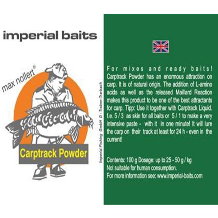 Carptrack Powder ist das Ur-Mittel von IB und hat eine enorme Anziehungskraft auf Karpfen. Es ist im Übrigen natürlichen Ursprungs. Der gezielte Zusatz von L-Aminosäuren (Derivaten) sowie die dadurch ausgelöste Maillard-Reaktion machen dieses Produkt zu einem der besten Lockmittel für Karpfen.