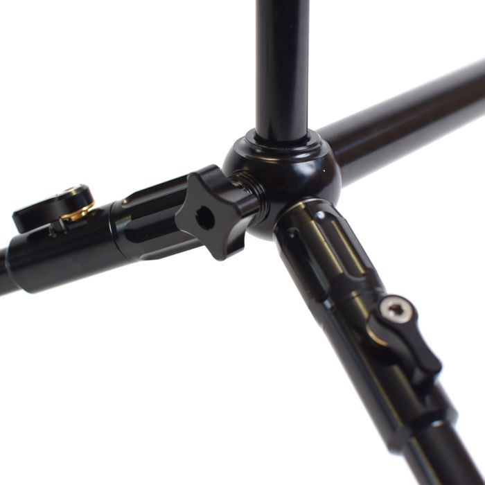 Gefertigt aus dem üblichen hochwertigen JAG-Aluminium mit superharter schwarzer Eloxierung, verfügt der Nano über massive Karbon-Einsätze bei der Hauptstange und den Beinen und natürlich der die aller neusten verlustfreien Rändelschrauben, die eine superleichten Aufbau ermöglichen. Er hat eine Länge von 38,5 cm in geschlossenem Zustand, lässt sich aber öffnen auf 51,5 cm.