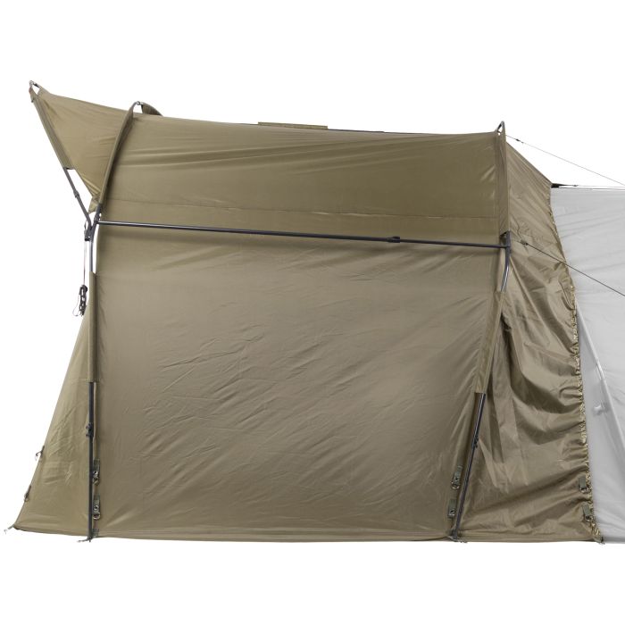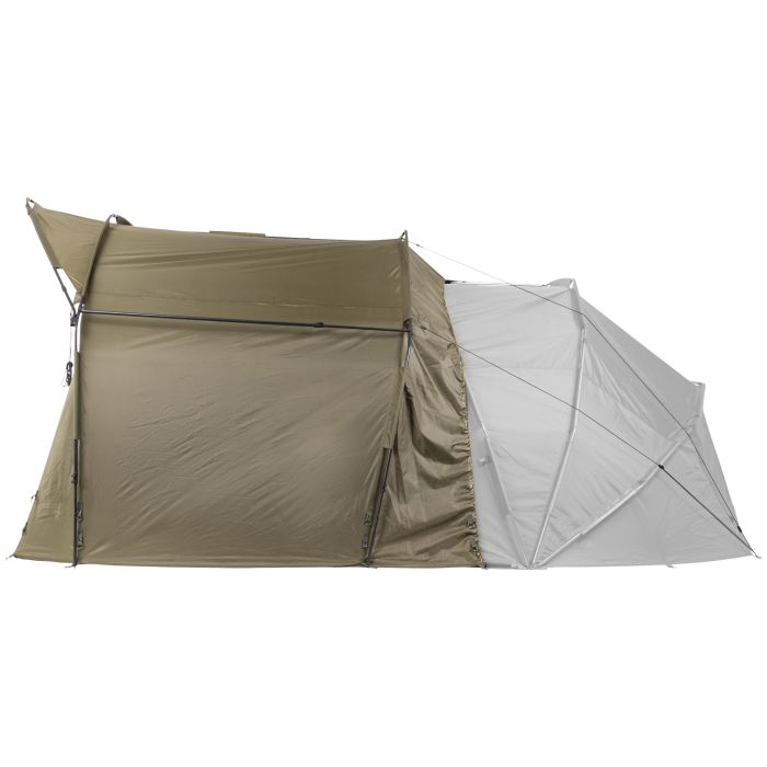 Dieses einzigartige Vordachsystem von JRC eignet sich für Bivvys aller Großen und schafft einen großzügigen Aufenthalts- und Kochbereich, der ideal für längere Angelsessions ist. Die Höhe kann sowohl für kompakte 1-Mann-Bivvys als auch für übergroße kontinentale Bivvys angepasst werden.