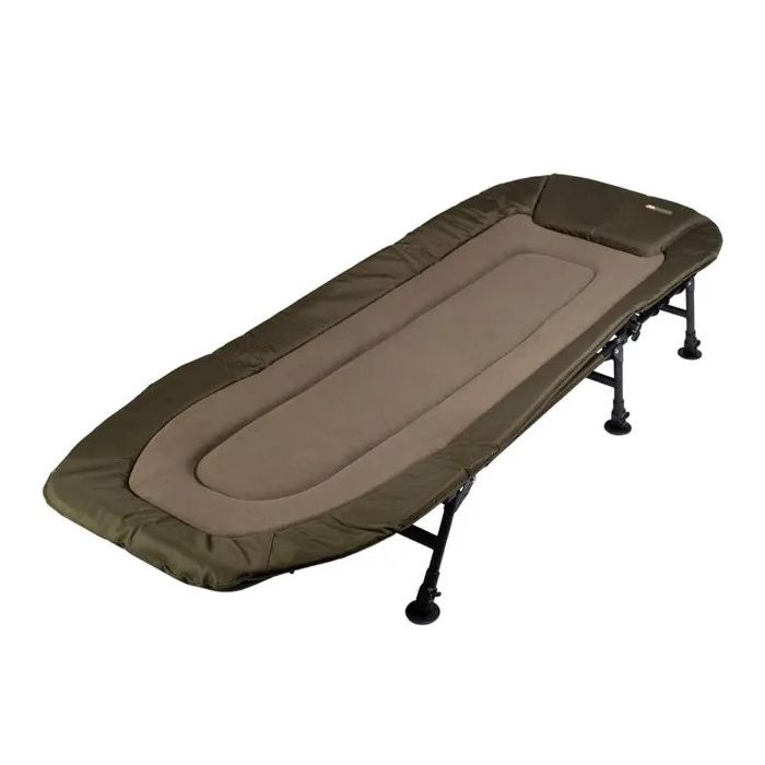 Der robuste Stahlrahmen der Karpfenliege sorgt für Stabilität und Langlebigkeit, während das 6-Bein-Design eine gleichmäßige Gewichtsverteilung und Unterstützung über die gesamte Liegefläche gewährleistet.