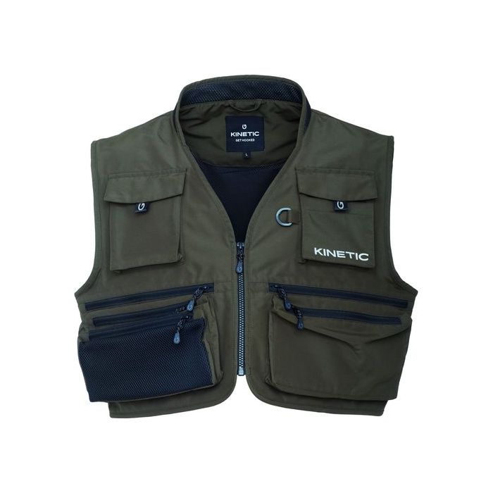 Gut ausgestattete, leichte Fliegenweste mit einem Netzfutter für hohe Atmungsaktivität und einem weichen, gepolsterten Kragen für zusätzlichen Komfort. Diese Weste hat den nötigen Stauraum für alle Ihre Angelutensilien.