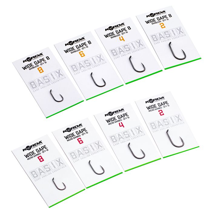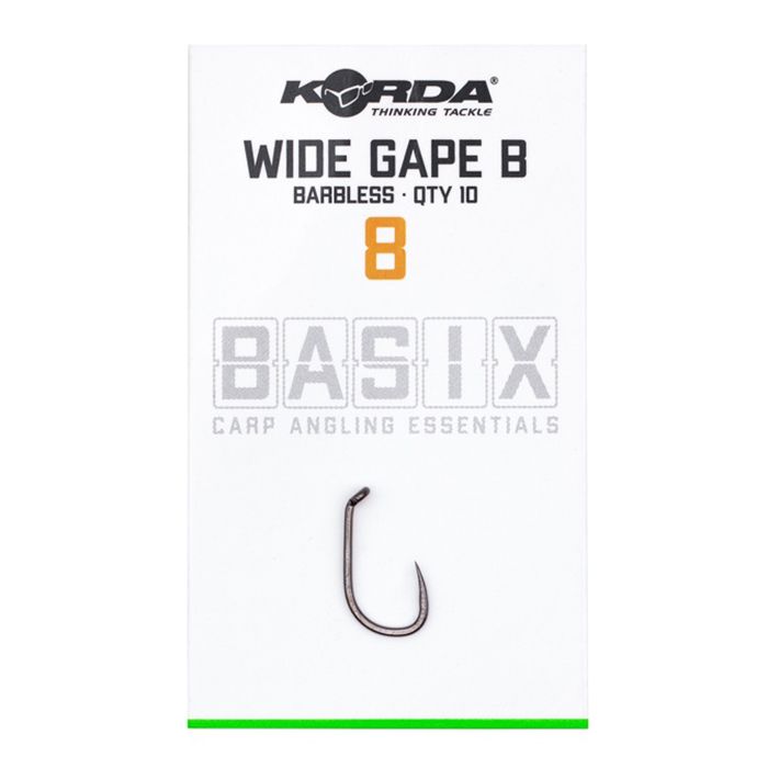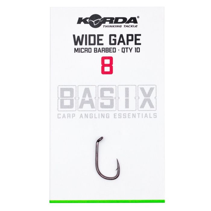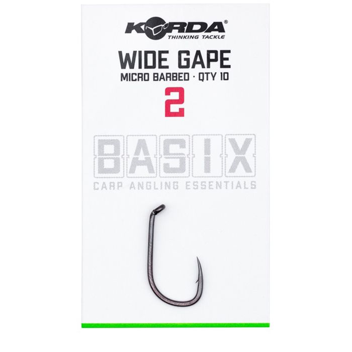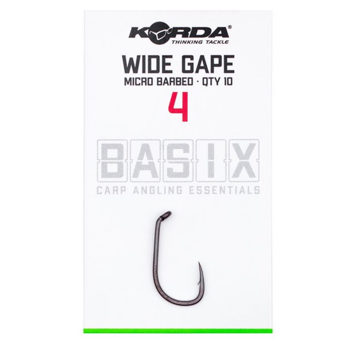 Der Wide Gape hat eine nadelscharfe, schnabelförmiger Spitze und einen Micro Widerhaken, um jeden gehakten Fisch zu landen, ohne dass zusätzliche Kicker oder Schrumpfschläuche angebracht werden müssen. Das Öhr ist nach innen gebogen, wodurch der Haken perfekt für Pop-Up- und Bodenköderpräsentationen ist. Dieser Haken ist aus dem Korda BASIX X Gauge-Draht gefertigt, und aufgrund seiner Stärke ist er so für den Einsatz sowohl in Großbritannien und Übersee geeignet. Der Wide Gape hat auch eine unauffällige Schwarznickel Farbe.