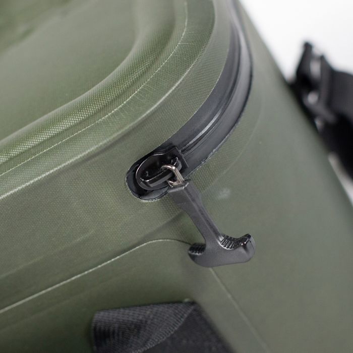 Der Compac Cooler bietet eine hervorragende Isolierung und hält seinen Inhalt bei längeren Sessions über einen längeren Zeitraum kühl. Der Deckel ist mit einem hochwertigen wasser- und luftdichten Reißverschluss ausgestattet, der die kalte Luft im Inneren einschließt und den Inhalt trocken hält. Außerdem hat er Tragegriffe und einen gepolsterten Schultergurt für den einfachen Transport.