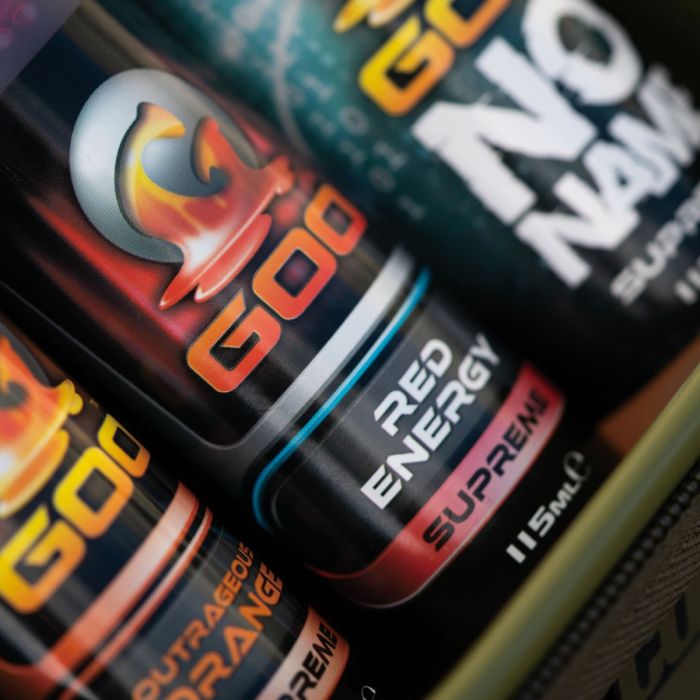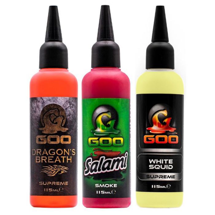 Goo ist ein Dip, Flüssigkeit und Spod-Mix-Zusatz, alles in Einem! Die attraktive Wolke, die sich von dem mit Goo behandelten Köder löst, muss man gesehen haben, um es zu glauben. Dies ist eines der Hauptmerkmale, die Goo so revolutionär macht. Das ist jedoch nicht alles. Die Fressanreitze und die verschiedenen Aromen in dieser geheimnisvollen Flüssigkeit wurden sorgfältig zusammengestellt, um das Beste in Sachen Fressreiz herauszuholen.