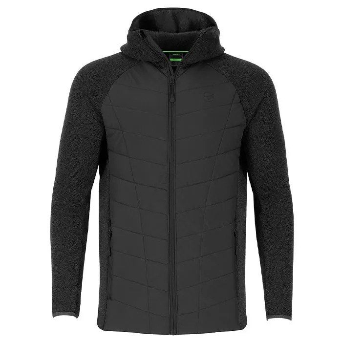 Die Hybrid Jacket ist eine Verschmelzung von zwei der beliebtesten Jacken von Korda, der Polar Fleece und der Puffer Jacket. Durch die Kombination des leichten Fleece-Materials der Polar Fleece Jacket und der Hohlfasertechnologie der Puffer Jacket wurde eine Jacke geschaffen, die Sie warm hlt und gleichzeitig maximale Bewegungsfreiheit bietet. Die Hybrid Jacket ist ein komplettes Allroundtalent und ermglicht das Werfen und Spodden bei kalten Bedingungen, ohne die Bewegungsfreiheit einzuschrnken. Die Fleece-Arme, das Seitenteil und die Kapuze sind aus einem schweren Strickfleece-Material gefertigt. Das macht die Hybrid Jacket nicht nur extrem bequem und warm, sondern schafft auch die ntige Flexibilitt. Das Mittelteil im Stil der Puffer Jacket hlt nicht nur warm, sondern ist dank der verwendeten Hightech-Materialien auch unglaublich angenehm zu tragen und schrnkt Ihre Bewegungsfreiheit nicht ein. Die leichte Wattierung nutzt eine Hohlfasertechnologie, um eine optimale Wrmemenge bei geringstem Materialgewicht zu gewhrleisten. Der Mittelteil ist auerdem winddicht, damit Sie auch bei schlechtem Wetter warm bleiben. Dazu trgt auch der lngere Rcken bei, der Zugluft verhindert und dafr sorgt, dass die Jacke beim Sitzen nicht ber den Hosenbund hochrutscht. Die eng anliegende Fleece-Kapuze und der hochschlieende Kragen knnen mit einem Reiverschluss um den Hals geschlossen werden, um zu verhindern, dass kalte Luft ins Innere der Jacke gelangt. Die Hybrid Jacket verfgt auerdem ber zwei mit Fleece geftterte Reiverschlusstaschen, in denen Sie Gegenstnde verstauen knnen, auf die Sie schnell zugreifen mssen, die aber auch Ihre Hnde warm halten. Durchgehend wurden hochwertige Reiverschlsse verwendet. Die Hybrid Jacket ist in Olivgrn oder Anthrazit und in den Gren S bis XXXL erhltlich. Hauptmerkmale: Eine Verschmelzung der Polar Fleece Jacket und der Puffer Jacket Das komplette Allroundtalent Perfekt zum Werfen und Spodden bei kalten Bedingungen uerst komfortabel und warm Maximale Bewegungsfreiheit Anschmiegsame Fleece-Kapuze und hoher Reiverschluss am Hals Mit Fleece geftterte Taschen Hochwertige Reiverschlsse Erhltlich in Olivgrn oder Anthrazit