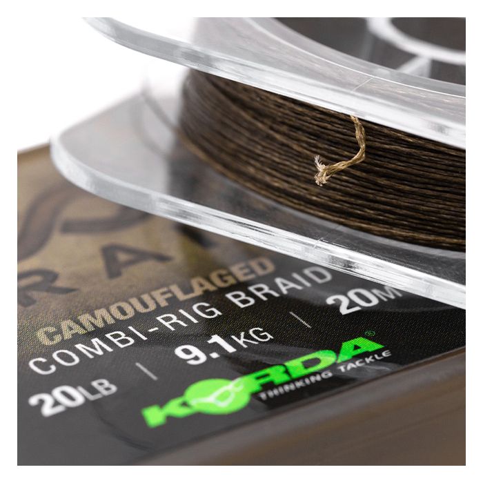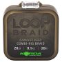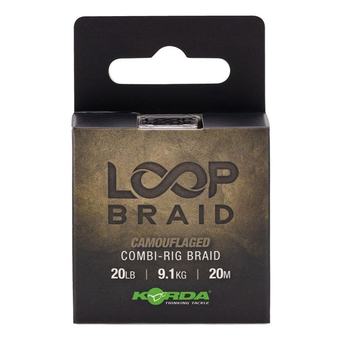 Loop Braid ist in einer bestens getarnten Farbe und in 20lb Tragkraft erhltlich. Die quadratischen Spulen passen perfekt in die Korda Tackle Box und beinhalten jeweils 20m Vorfach.