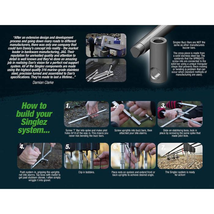 Das Korda-Singlez-System besteht aus drei wichtigen Einzelteilen - diesem Spike, dem T-Bar und dem Ballstabilisator - sowie einer ganzen Reihe von anpassbaren Buzz-Bars und Uprights, die es Ihnen ermöglichen, Ihr Setup nach Ihren Bedürfnissen zu modifizieren.