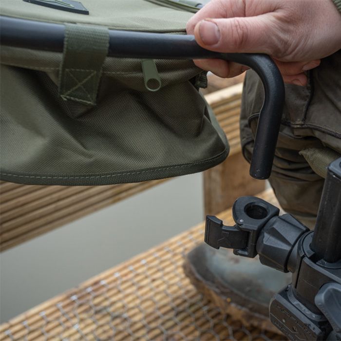 Als zusätzliches Merkmal gibt es ein Schnellverschlussadapter, damit Sie den Metallring gut befestigen können. Dieses Produkt wird standardmäßig mit Einsätzen (23 mm rund, 25 mm rund und 23 mm quadratisch) geliefert und passt somit direkt auf die Korum X25- und S23-Accessory-Stühle.