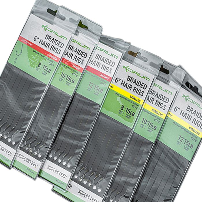 Mit den Korum Big Fish Braided Haarvorfächern können Sie auf größere Fische zielen, weil Sie stärkere Haarvorfächer verwenden. Sie bieten ein perfekt getarntes Vorfach mit starken Schlaufenknoten, die einen schnellen und einfachen Wechsel ohne Abrieb ermöglichen.