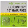 Dieses superschnelle Köderstoppsystem besteht aus einem hochwertigen Superstaahl Allrounder-Haken, gebunden an Besonders abriebfeste Korum-Schnur, und einem Quickstop. Perfekt für Boilies, weiche Pellets, Fleisch und Mais, so dass das Angeln mit einem Haarrig und Köder sehr einfach wird.