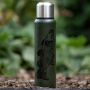 18/8-Edelstahl in Lebensmittelqualität. Anti-Kondensations-Design. Mit Metalldeckel, Stahlinnenhülle und Stoffriemen zum einfachen Tragen.