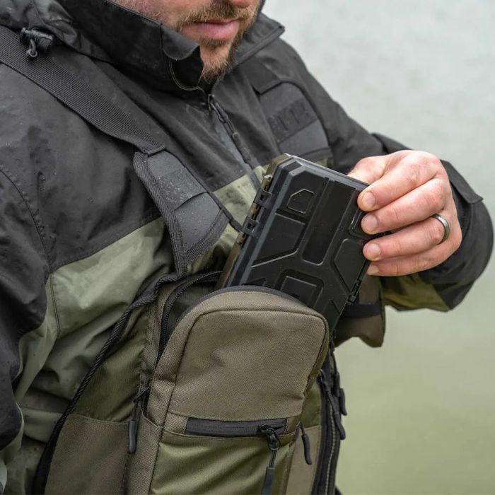 Aktive Angler werden die Glide Roving Wetse lieben. Sie verfügt über praktisch platzierte Taschen, in die die Komponenten unserer Tackle Blox-Serie passen, wie z. B. Float Blox, Rig Blox und Bits Blox. Die bequeme Weste verfügt außerdem über zusätzliche Taschen für Kleinteile, Werkzeuge und persönliche Gegenstände. In der hinteren Tasche können Sie weiteres Tackle und Köder verstauen. Sie kann bei Bedarf abgenommen und separat von der Weste getragen werden. Hergestellt aus wasserabweisendem und strapazierfähigem Jacquard-Gewebe. Nur Einheitsgröße. Passt Anglern der Größen S bis XXL.