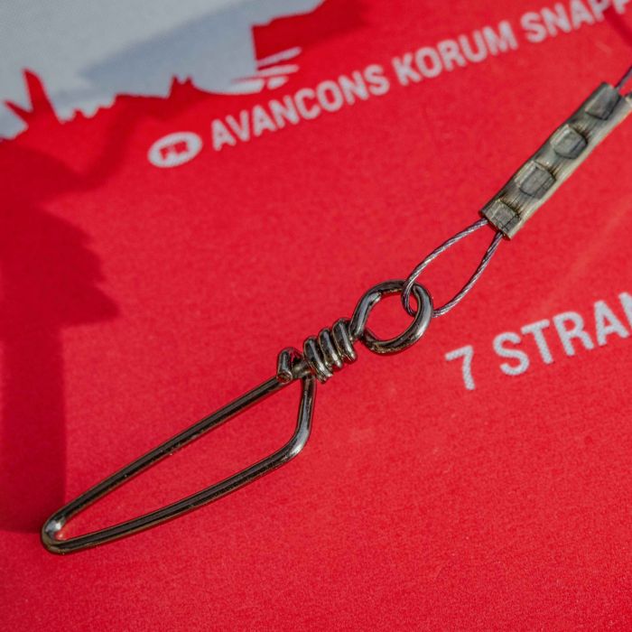 Dieses Vorfach von Korum ist hergestellt aus 28lb (12,7kg) nylonbeschichtetem , 7-Litzigem 12kg (28lb) Japanischer Edelstahl Draht. Die Quetschhülsen und Wirbelverbindungen sind mit konischen Hülsen überzogen, um die Lebensdauer zu verbessern und Verwicklungen zu reduzieren