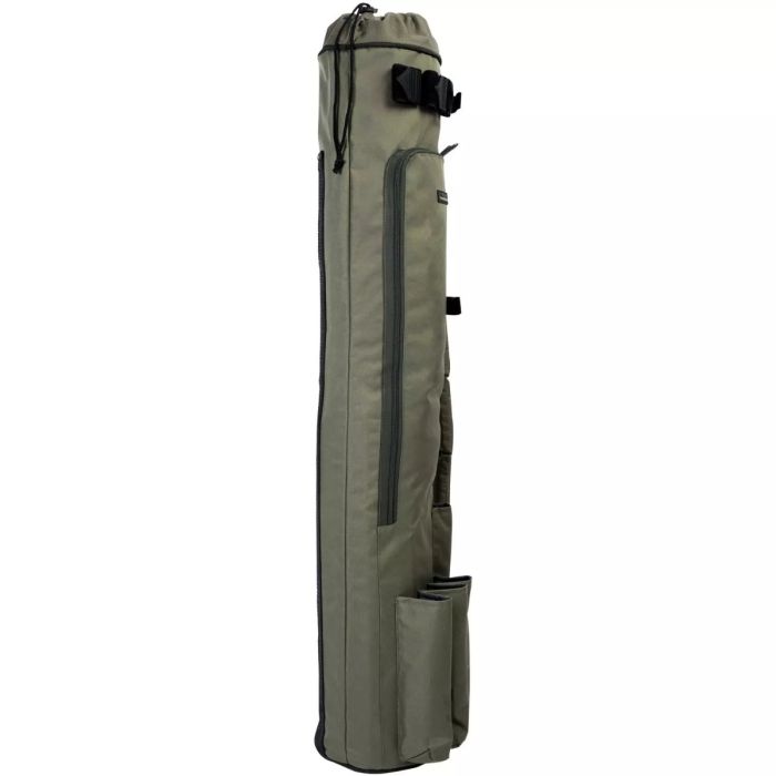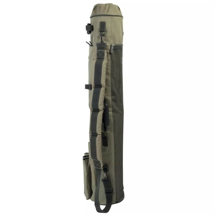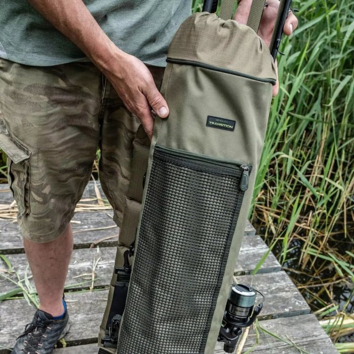 Die Transition Quiver Rutentasche wurde so gestaltet, dass sie einen maßgeschneiderten Bereich für Ihren Kescherstab bietet. Sie bietet Platz für mindestens drei Ruten, einen Kescherstab und ein größeres Hauptfach, in das alle Korum Schutzhüllen und Brollies hineinpassen. Mit praktischen Außentaschen für Ihre Ausrüstung oder auch Stuhlzubehör.