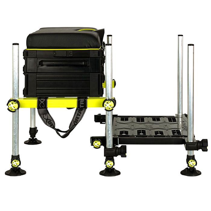Ein leichter Aluminiumrahmen, angetan in Lindgrün, das sich genial gegen das klassische Mattschwarz des Rahmens abhebt, gibt der Matrix F25 Sitzkiepe eine stylische Praktikabilität, die ihnen Komfort und optimale Nutzung auf allen Gewässern bietet und egal welchen Angelplatz zu einem guten macht. Denn durch die Matrix F25 können sie dort angeln, wo sie wollen ohne Getue und mit nur minimalem Aufwand.