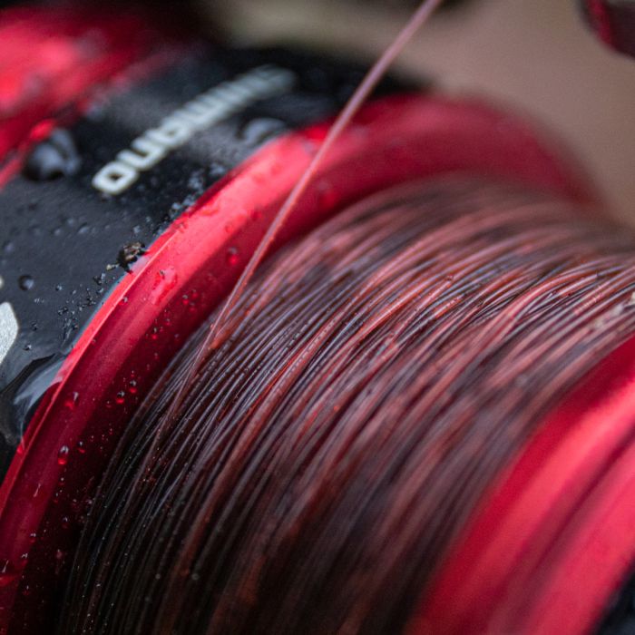 Die Chameleon Mono (Maxispule), verschwindet im Wasser, d.h. sie ist unsichtbar. Wenn Lichtstrahlen auf die Schnur treffen, zeigt die rot-braune Schnur plötzlich eine Fülle von Grüntönen. Diese wiederum passen sich der Farbe des Wassers an und machen somit die Schnur für die Fische unsichtbar.