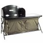 Die kompakte Station mit Doppelregal und Tisch klappt sich einfach zusammen. Mit der speziellen feuerfesten Tischplatte haben Sie die ideale Arbeitsfläche zum Kochen, zum Essen und im inneren Kochgeschirr usw. zu lagern. Die Kochstation verfügt über eine geniale, faltbare, dreiseitige Windschutzplatte, die durch Metallstifte fixiert wird und beim Kochen Schutz für Kessel und Kocher bietet. Sie schützt auch vor dem unerwarteten Verlust von Ausrüstungsteilen und TT-Paketen, wenn ein Windstoß durch Ihr Bivvy oder Gazebo weht.