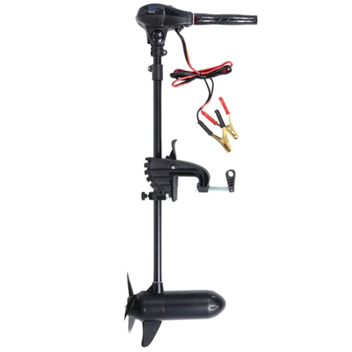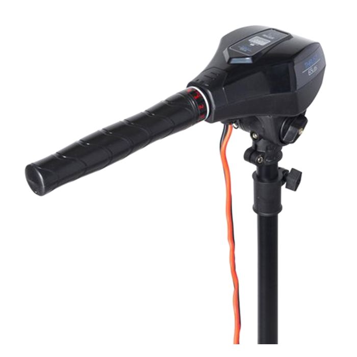 Ein verstellbarer Kontrollkopf ermöglicht eine optimale Anpassung und Kontrolle, während die blaue LED-Betriebsanzeige deutlich anzeigt, wann der Motor in Betrieb ist. Der dreiblättrige Propeller aus Polycarbonat sorgt für eine effiziente Antriebskraft und Langlebigkeit, während die ausziehbare, schwarze Pinne aus Aluminium ein ergonomisches Design für komfortables Steuern bietet.