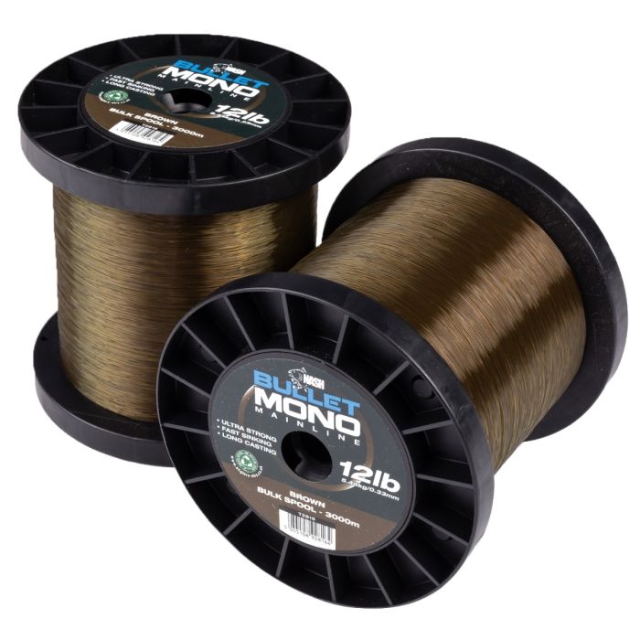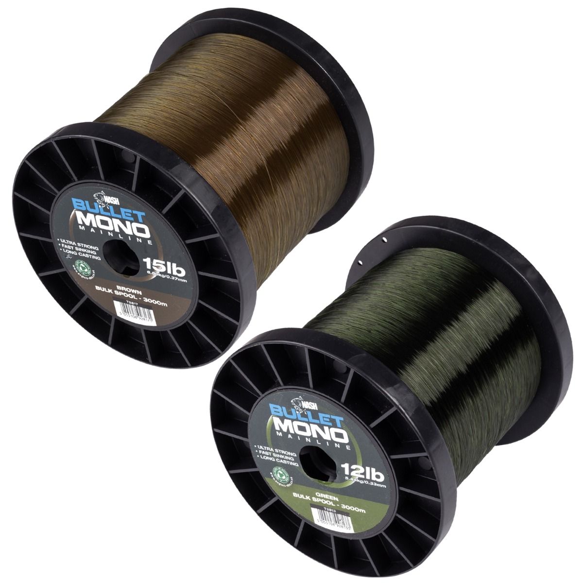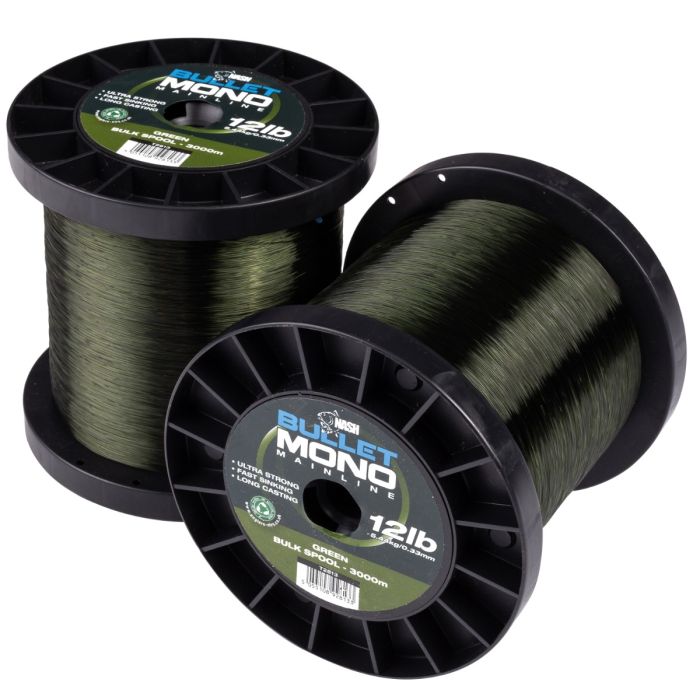 Die weltberühmte Nash Bullet Mono ist wieder da! Sie ist Dehnungsarm, schnell sinkend und hat eine sensationelle Wurfeigenschaft. Sie hat eine unerreichbare Stärke und Abriebfestigkeit und wie alle anderen Bullet-Schnüre ist die Knotenfestigkeit um ein Vielfaches höher als angegeben. Es gibt 3000 Meter pro Spule, erhältlich in dezentem Grün oder Brau.