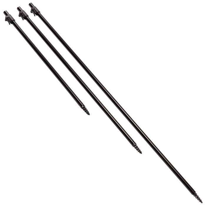 Glanzlose, schwarze Bivvy-Sticks mit erprobten, extrem stabilen Schraubspitzen für Verwendung bei den härtesten Böden. Sie alle haben große Cam-Lock-Verschlüsse, genial wenn es nass wird. Durch das gefalzte Innenteil ist lästiges Verdrehen ausgeschlossen.
