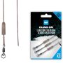 Kurze Cling On Leadcore Leader für das Angeln mit PVA-Beuteln, die es ermöglichen, PVA-Beutel im Voraus vorzubereiten und sie mit der gespleißten Schleifenverbindung an die Hauptschnur binden oder knoten zu können. Platzieren Sie den Größe-8-Ringwirbel in der Spitze eines In-Line-Blei und sichern Sie ihn mit dem universellen Tail Rubber.