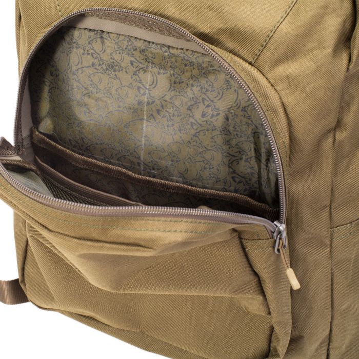 Dieser Tagesrucksack ist kompak und ist für erhöhten Komfort großzügig gepolstert. Er verfügt über verstellbare und gepolsterte Schultergurte zusammen mit einem Tragegriff und eine mit Reißverschluss versehene Fronttasche. Auf der Unterseite befinden sich verstellbare Gurte und Schnallen. Das Hauptfach umfasst ein Volumen von 20 Litern.