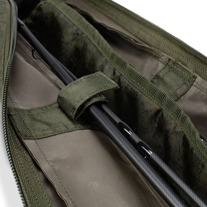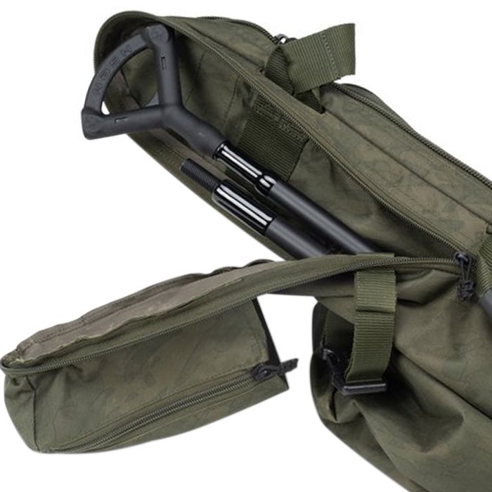 Diese Nash Dwarf Skins, haben Taschen am Absatz und Verschlüsse sowie Gurtband, um die Menge an Angelruten, die Sie zum Ufer mitnehmen, durch zusätzlicher Single Skins zu erhöhen. Zusätzlicher Stauraum für Ihre Banksticks oder die Wahl der Rutenhalterung kann auch noch gefunden werden, alle mit verstärkten Böden, um Schutz beim Transport zu gewährleisten. Außerdem gibt es eine Reißverschlusstasche für den Empfänger, damit Sie beim Angeln alles mitbekommen!