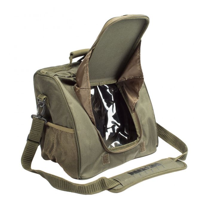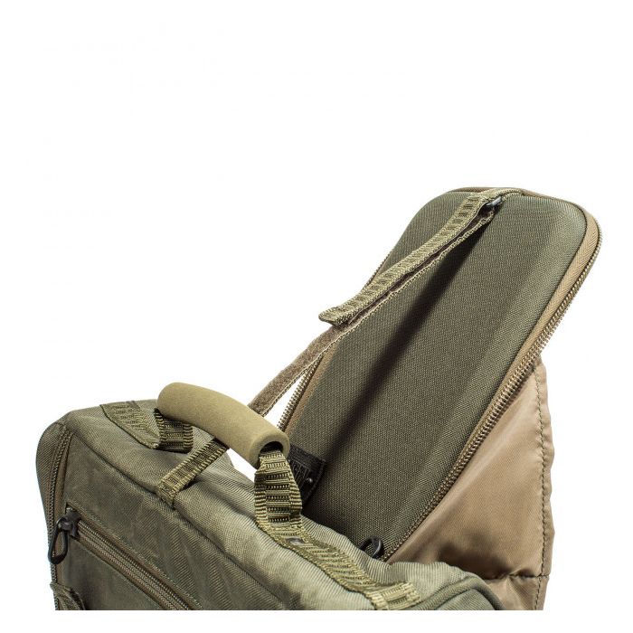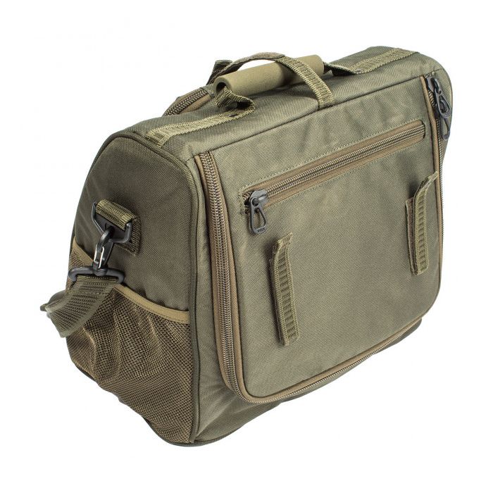 Der Zugang wird durch dem hinteren Fach erleichtert, die Tasche hat Gummipolster, falls Ihre Hände nass und schleimig werden, und praktische Netz-Seitentaschen um H-Block-Markierungen zu lagern.