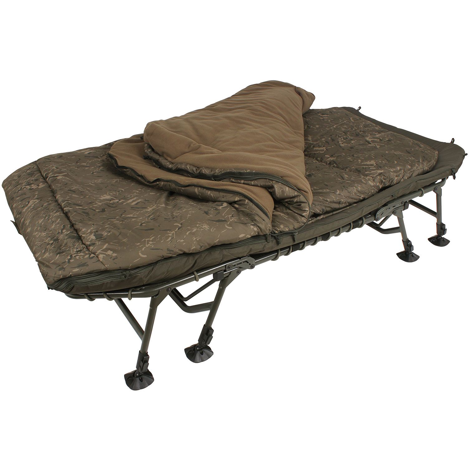 The Nash Air Frame Sleep Systems are a single solution. For too long bedchairs and traditional sleeping bags have focused on cold weather performance. Hardcore anglers need performance, but changing seasons, temperature drops, muggy weather and even individual temperature tolerances make flexibility the crucial comfort factor wherever you are fishing in the world.