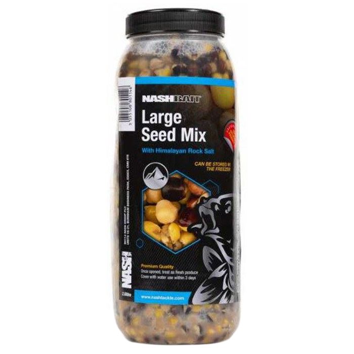 Nash Large Fishing Seed Mix is a high-quality, pre-prepared particle mix that's boosted with Himalayan rock salt. It contains a blend of maple peas, chick peas and red and yellow maize - perfect for putting down a carpet of bait to keep fish occupied in your swim. You can also mount any of the particles on the hook if you want to match the hatch!