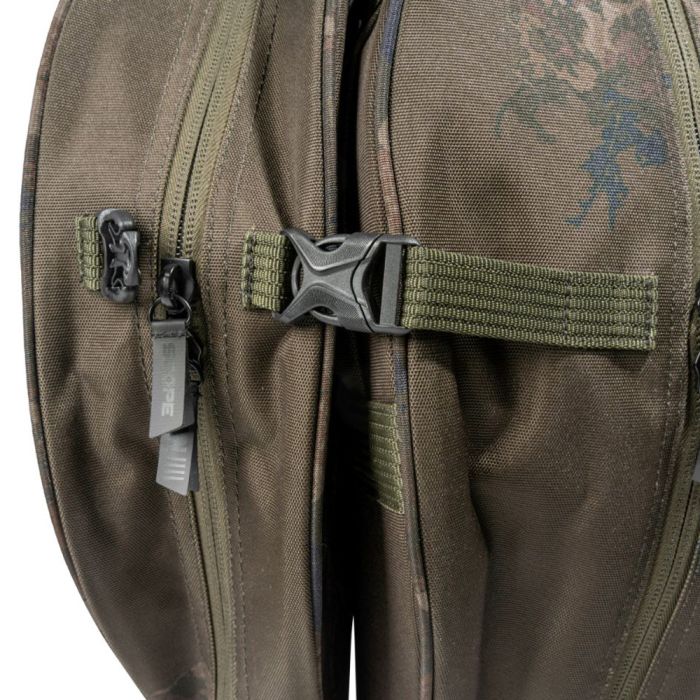 Der Scope OPS Hi Protect 2 Rod Skin ist perfekt als Basiseinheit für Rutentaschen konzipiert und lässt sich schnell und einfach an jedes Gewässer und jede Sessionlänge anpassen. Zusätzliche Scope OPS 1 Rod Skins und Stink Bags können dank der Klettpatches und Schnallen an beiden Enden sofort angebracht werden, wodurch die Kapazität zum Transport von mehr Ruten und Keschern als je zuvor erhöht wird. Die Basistasche und die Kompressionsriemen ermöglichen es, Retainer, Stormpoles, Wurfrohre oder sogar kompakte Schirme außen anzubringen – eine Komplettlösung für den Transport mehrerer Ruten.