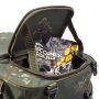 Der Scope OPS Ruckall besitzt ein entfernbares EVA Deckelfach, das beim Öffnen ein Tablett zum Vorschein bringt, auf dem Sie Ihre benötigten Gegenstände in Reichweite ablegen können. Beim Öffnen finden Sie auf einer Seite zwei geräumige Fächer mit einem festen Trenner, um darin Tackle und Ausrüstung für Ihre Angelsession unterzubringen. Die gegenüberliegende Seite hat ein Reißverschlussfach und ein kleineres Isolierfach, um dort Ihre Köder und Lebensmittel kühl zu halten.