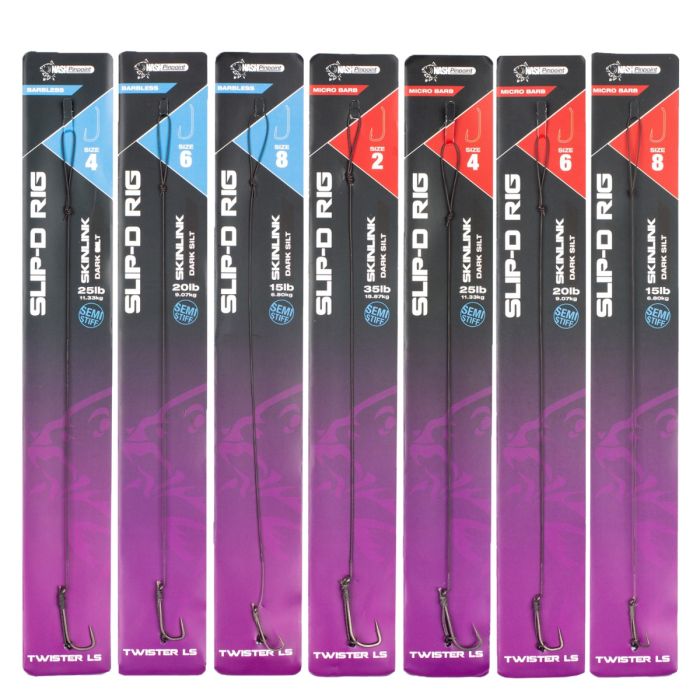 Das Slip D Rig ist ein Rig mit einem Pinpoint Long Shank Twister Haken zum Präsentieren von Grund-, Pop Up- und Kultivierungsködern. Diese Vorfach hat eine hervorragende Hak- und Anti-Eject-Performance und ist an einen schnell sinkenden Skinlink Semi-Stiff Vorfachschnur gebunden.