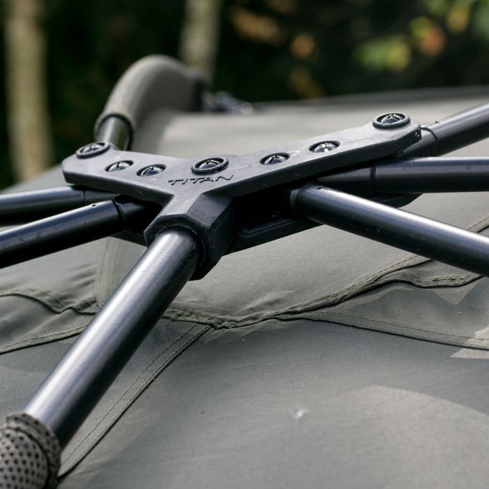 Die angepassten Beine erlauben ein robustes, freies Stehen ohne Tension Straps, neu geformte Halterungen an den vorderen Stangen ermöglichen müheloses Spannen der Außenhaut, ein flacher Storm-Pole-Aufbau unterstütz das Vordach und frei bewegliche Storm Pole Befestigungen folgen dem Aufbau und ermöglichen seitlich angebrachte Sturmstangen, sie können auch an der Eingangstür abgespannt werden – diese Erweiterung gibt extra Raum. So hat man freie Sicht und unbehinderten Zugang wenn man das Titan ohne Front verwendet.