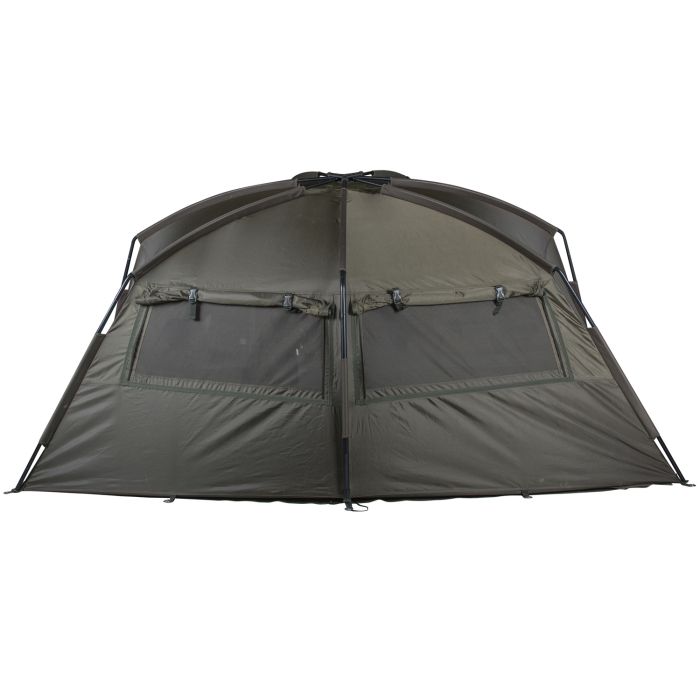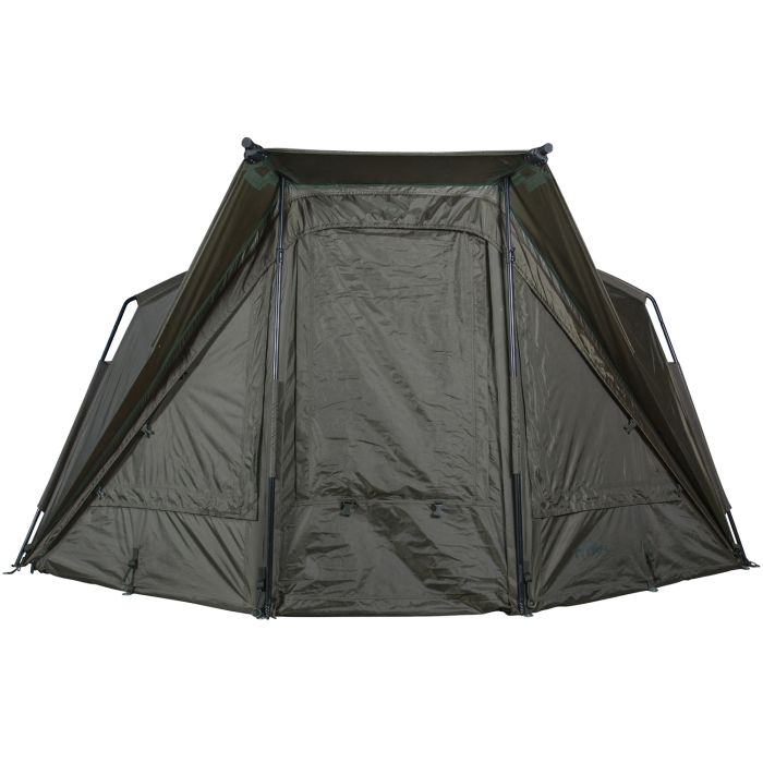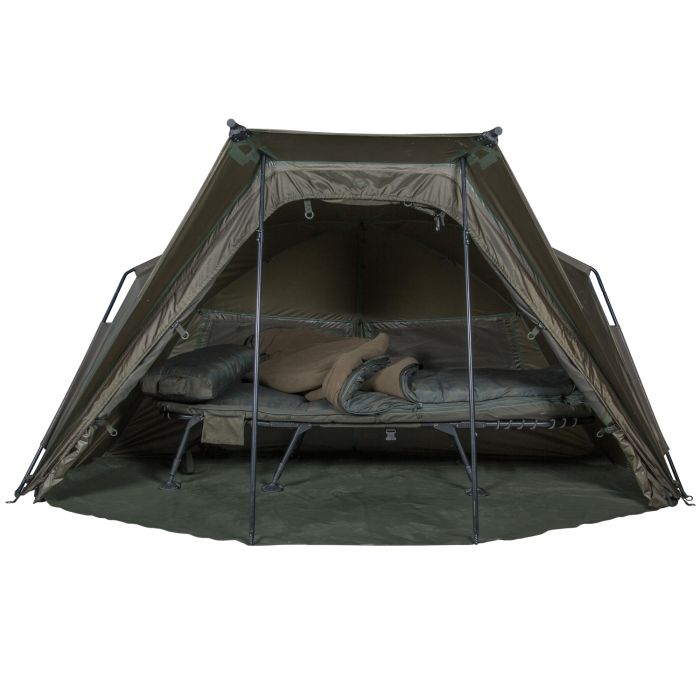 Diese Bivvy haben einen verbesserter Glasfaserblock für weniger Gewicht, mehr Stabilität und einen raffinierten Aufbau. Das neue Rahmendesign schafft mehr Platz im Inneren, Bedchairs können nun ganz an die Rückwand gestellt werden. Verlängerte Vorderrippen formen nun ein Vordach für noch mehr Schutz und Komfort und alle Modelle haben eine abzippbare Front und Regenrinnen für ein Plus an Komfort.