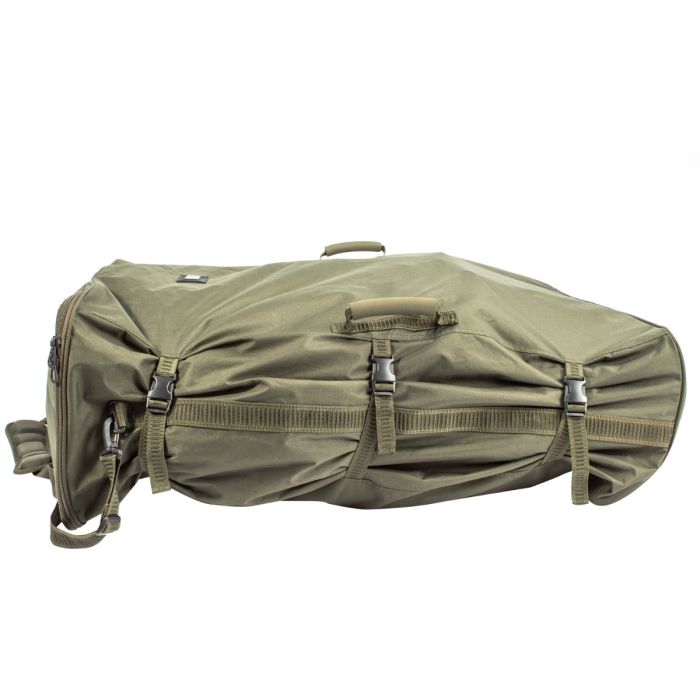 Diese Nash Bedchair Tasche ist breit gefächert, d.h. er ist für die größeren auf dem Markt erhältlichen Schlafstühle konzipiert. Die Liegestuhltasche ist mit einem zweiseitigen Reißverschluss und einem versteiften Unterteil ausgestattet, um Beschädigungen an den Stuhlecken zu vermeiden, die dazu neigen, etwas mehr Druck und Belastung auszuhalten.