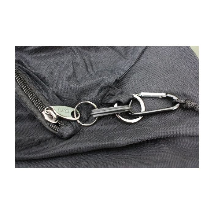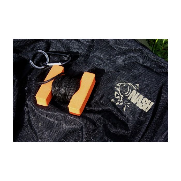 This airflow material is far superior to cheap mesh sacks that could result in damage to your catch. A safety cord and fluorescent H-block is attached to the special heavy-duty ring located at the zip closure. At the other end is an additional heavy-duty ring, which is attached to a 4 metre retaining cord for securing the sack to your bankstick etc. The Nash Monster Carp Zip Sack (Safety System) is the first to incorporate a fluorescent H-block marker to ensure a carp can be safely found and recovered should the worst happen, and the sack detach from its retaining cord. Note: Kevin Nash developed this system after experiences in France where muskrats were chewing through the retaining cords on carp sacks. To avoid this happening with the sickening result of a lost carp entombed in a sack, Nash recommends that you always use the Monster Carp Zip Sack (Safety System).