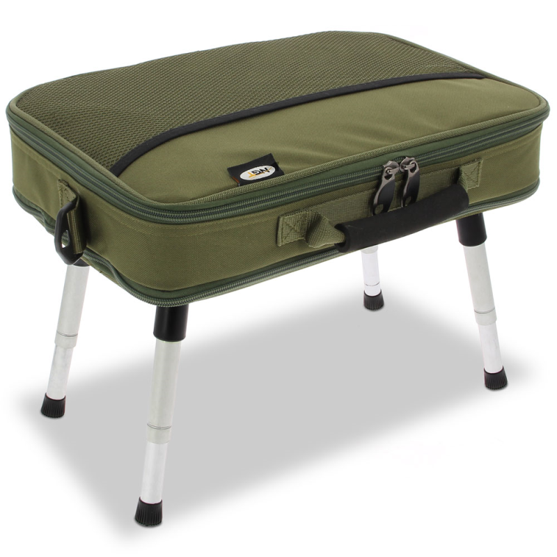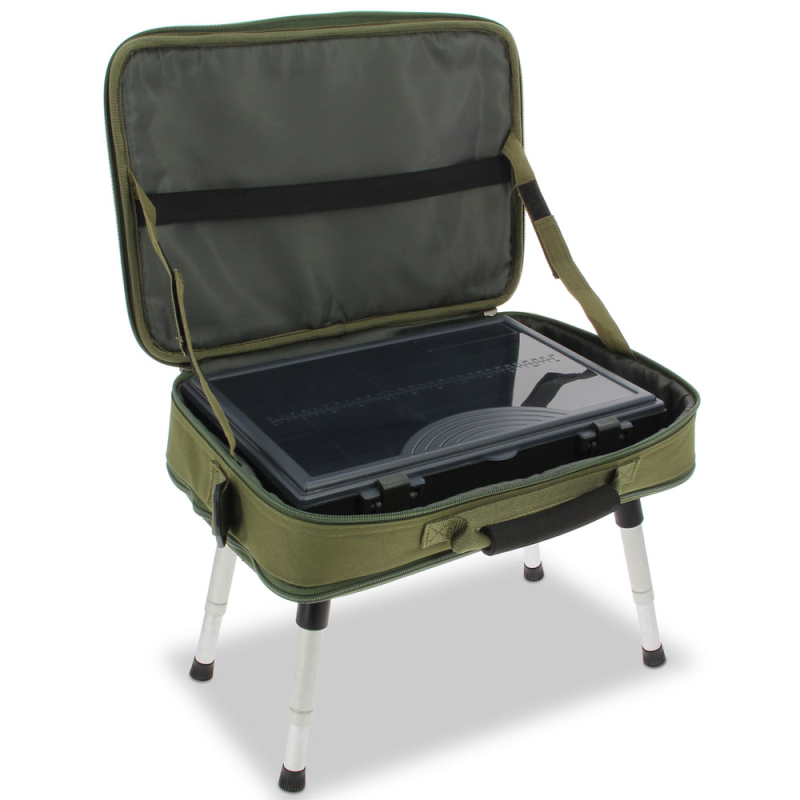 Exclusively designed and imported by NGT! A boxcase system which is ideal for the angler 'on the go.' This wonderful item has a built in bivvy table which has one touch adjustable legs, and can be removed from the case and used on its own. The boxcase system also comes with a high quality system tackle box with fits inside the case. The tackle box has adjustable compartments, to store your terminal items. A well padded shoulder strap, padded handle, high quality zips and mesh front panel for additional storage completes this unique item!