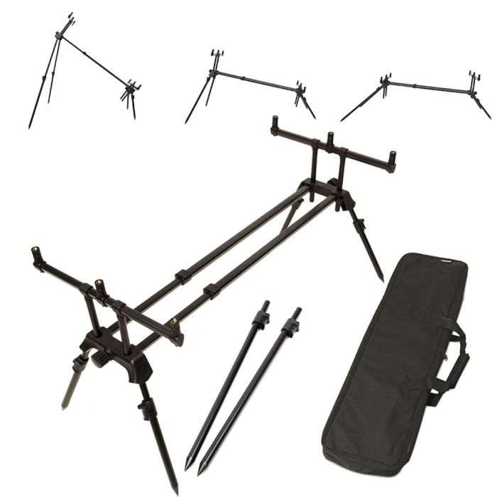 Dieser Rodpod von NGT lässt sich einfach und schnell stabil aufstellen. An diesem Rodpod können Sie 3 Ruten aufstellen. Die Beine sind in der Höhe verstellbar, um die Stange auf jeder Oberfläche aufzustellen. Einfach in der Höhe verstellbar, um die perfekte Aufstellung zu schaffen. Dank seines geringen Gewichts lässt er sich in der mitgelieferten Aufbewahrungstasche leicht mitnehmen. Hergestellt aus mattschwarzem Aluminium mit stabilen Schraubverschlüssen.