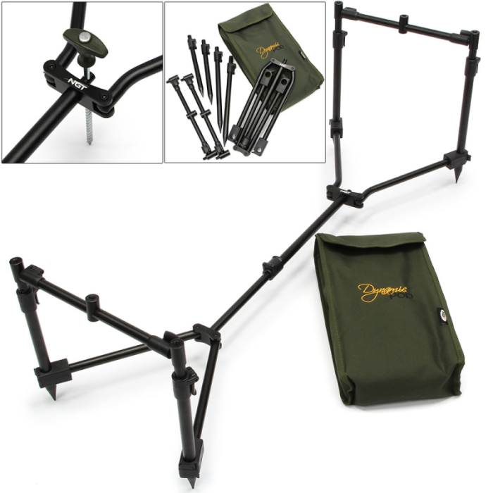 Der NGT Dynamic Pod with Case ist ein leichter und kompakter Rodpod, das zusammengeklappt in einen kleinen, mitgelieferten Koffer passt. Dieser Rodpod ist vollständig in der Höhe als auch in der Länge einstellbar. Beide Buzzerbars sind auch in der Höhe verstellbar, ein Feature, das bei den meisten Rodpods recht selten ist. Das bedeutet, dass auch Big Pit Rollen problemlos Platz finden. Mit den verstellbaren Buzzerbars können Sie den Winkel Ihrer Ruten einstellen, was beim Angeln in hindernisreichen Gewässern sehr praktisch sein kann. Der Rodpod hat auch einen Verankerungspunkt, um ihn mit einem Hering zu befestigen, sollten Sie mit einer stark geschlossenen Bremse angeln. Alles in allem ein sehr solider und kompakter Rodpod aus robusten Materialien, den man leicht und kompakt transportieren kann und preislich sehr attraktiv. Achtung! Der Hering auf dem Foto wird nicht mitgeliefert!