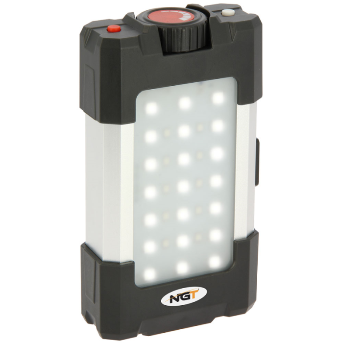 Eine sagenhafte Erfindung und unser neues Produkt: eine extrem ausdauernde Powerbank mit inklusivem Flutlicht in einem. Es könnte nicht besser sein. Ausgestattet mit einer extrem starken 10400mAh-Batterie sowie inklusivem Karabiner zur Befestigung an Bivvy Zelten. Diese funktionelle Powerbank kann Ihr Handy bis zu 5 Mal aufladen. Sie eignet sich perfekt für lange Sommerabende am Wasser und kann selbst bei Dunkelheit mit ihrer speziellen Flutlichtfunktion und mit 21 hell weißen LEDs den gesamten Angelplatz oder das Bivvy beleuchten. Eine integrierte Dimmfunktion sorgt dafür, dass die Helligkeit individuell angepasst werden kann. Weitere 6 rote LEDs bieten sich außerdem optimal dafür an, sollte man eher unauffällig bleiben wollen.