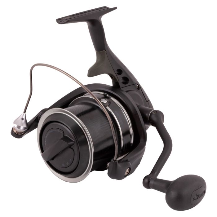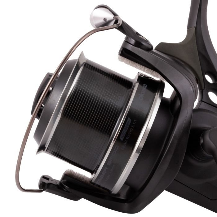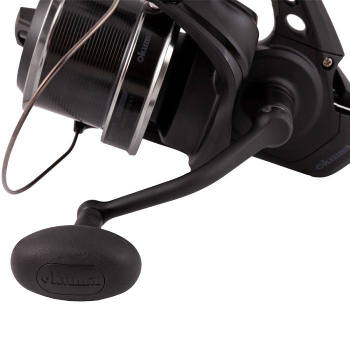 Die Okuma Big Bomber Spod Spinning Reel hat einen Hartmetall Kurbel mit einem TPE ergo Knauf der für Geschwindigkeit und Leistung entwickelt wurde. Sie ist ausgestattet mit Worm-shaft Schnurverlegungssystem damit die Schnur schnell und gleichmäßig über die Schnurrolle rollt und somit die Schnurverdrehungen und Reibung reduziert.